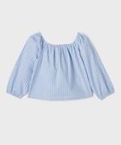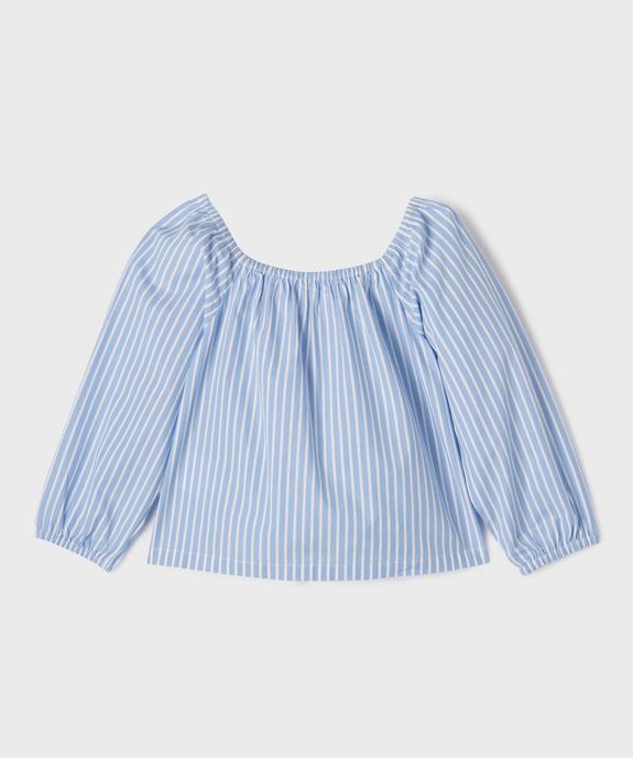 Chemise rayée à manches longues et col Bardot fille bleu ciel