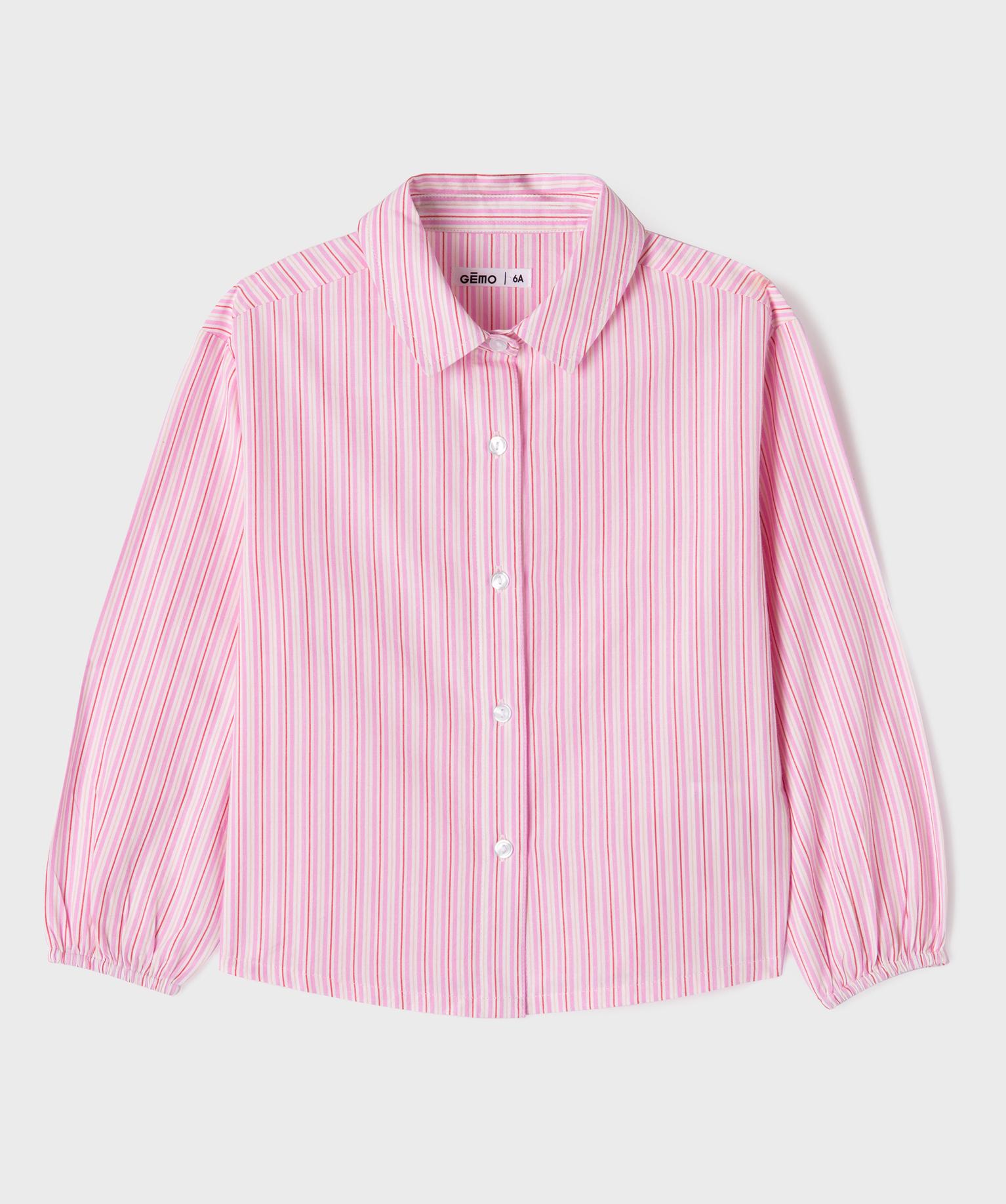Chemise rayée avec manches resserrées aux poignets fille rose