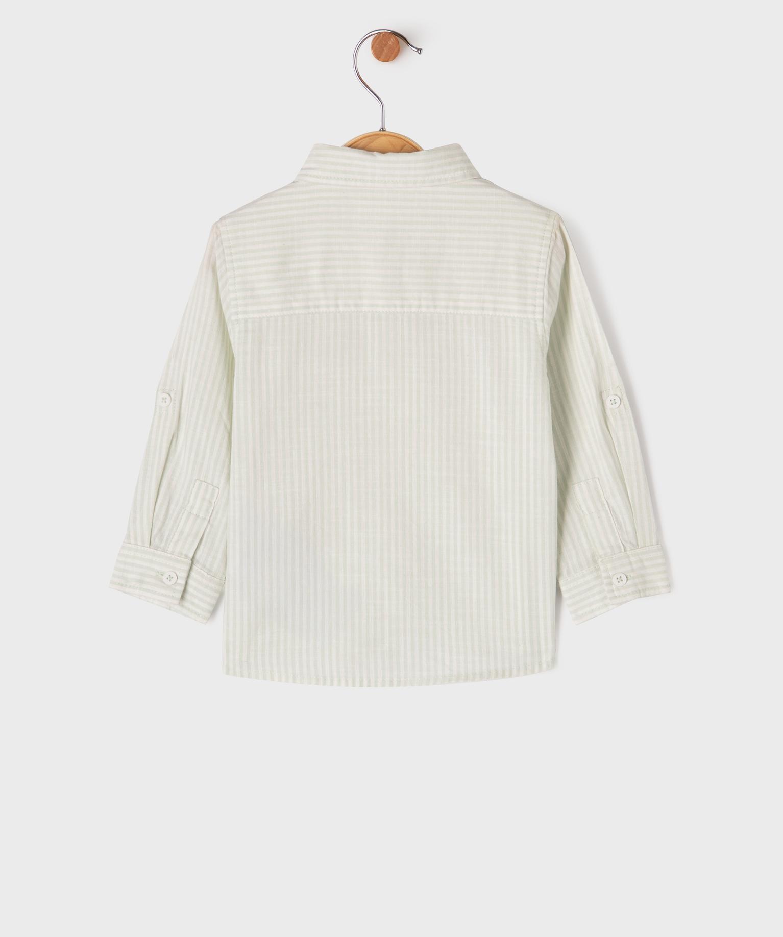 Apportez une touche de charme au dressing de votre petit garçon avec cette chemise rayée aux tonalités délicates. Confectionnée dans un coton léger et agréable à porter, elle assure confort et liberté de mouvement. Ses manches peuvent être retroussées et maintenues grâce à une patte boutonnée, pour un look modulable selon les envies. Fermée par une élégante rangée de boutons, cette chemise bébé garçon se marie aussi bien avec un bermuda en lin pour un style chic et décontracté qu’avec un pantalon habillé pour les grandes occasions.