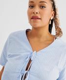 Chemise rayée en coton fermeture liens femme grande taille bleu
