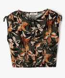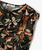 Ajoutez une touche d’exotisme dans le dressing des filles avec cette jolie chemise sans manches ornée d’un feuillage tropical et de fleurs. Une chemise fille qui se distingue par ses épaules froncées avec liens noués cousus, sa base élastique et sa jolie rangée de boutons aux reflets nacrés. Une chemise imprimée pleine de charme, entièrement confectionnée en viscose et très agréable à porter en saison estivale. Col rond.