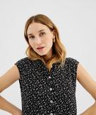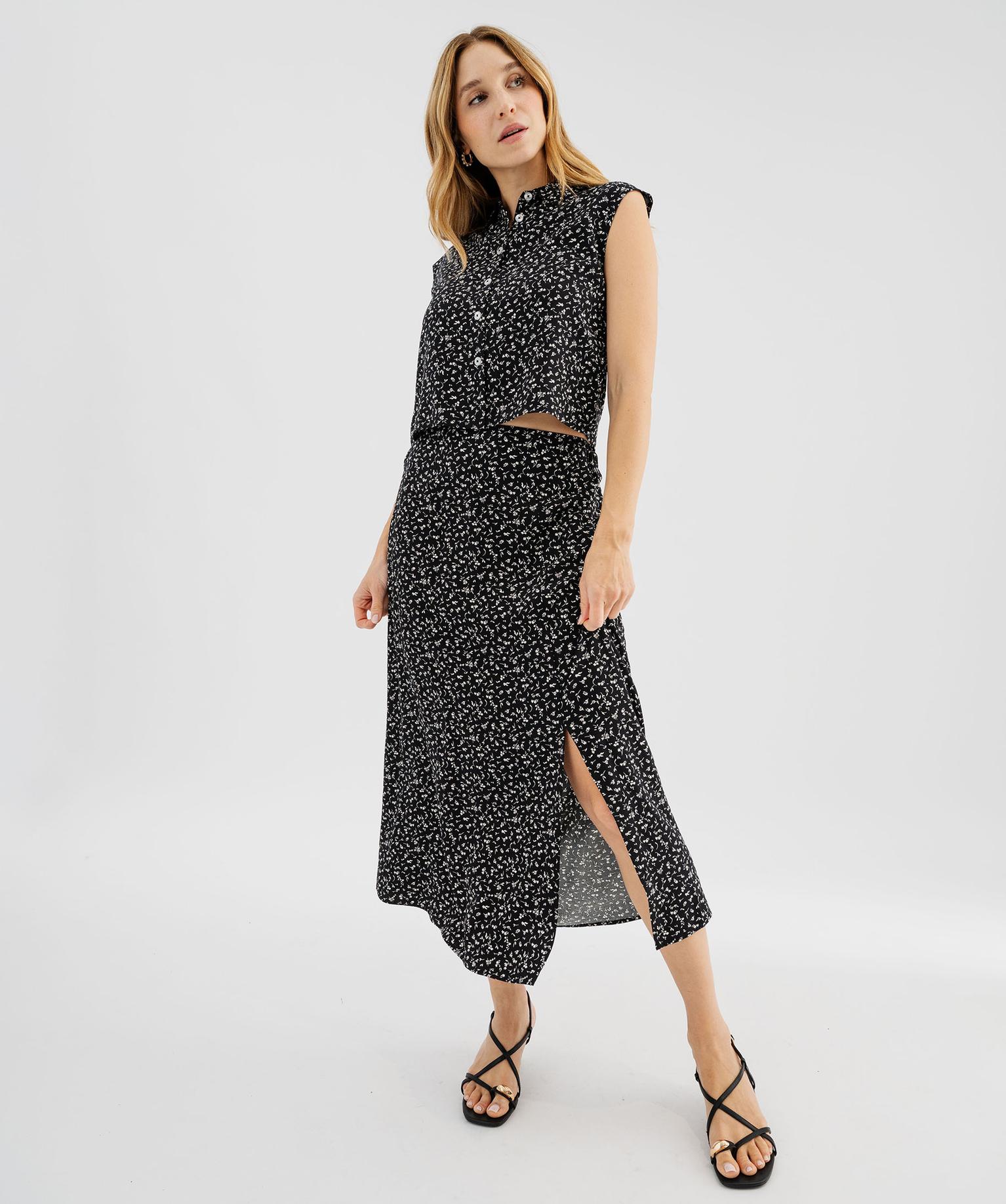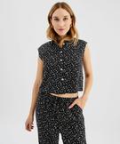 Chemise sans manches courte et ample en viscose fluide imprimée femme noir