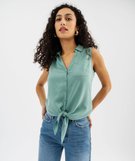 Chemise sans manches imprimée avec nœud dans le bas femme[MISSING] vert