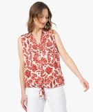Chemise sans manches imprimée avec nœud dans le bas femme marron vif