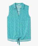 Une chemise sans manches pleine de charme avec ses jolis motifs différents en fonction des coloris. Cette chemise femme possède un décolleté en V, une fermeture boutonnée et des pattes à nouer dans le bas qui offrent une allure élégante inspirée des années 60. Cette chemise fluide en viscose s’accordera aussi bien avec un jean slim qu’avec un pantalon ample en toile. Poche poitrine. Bas arrondi au dos. Petites fronces dans le milieu du dos.