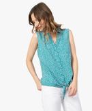 Chemise sans manches imprimée avec nœud dans le bas femme orange vif
