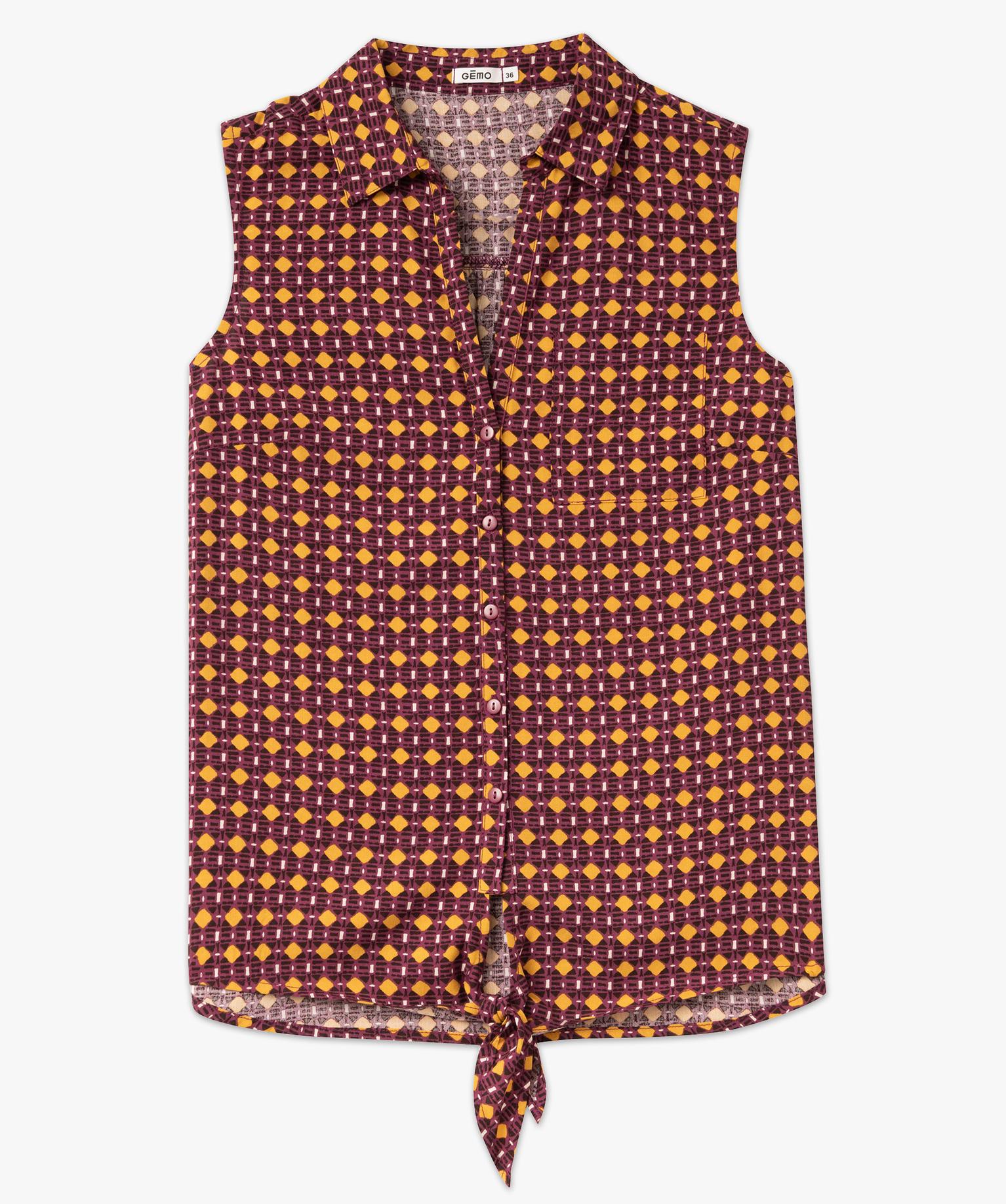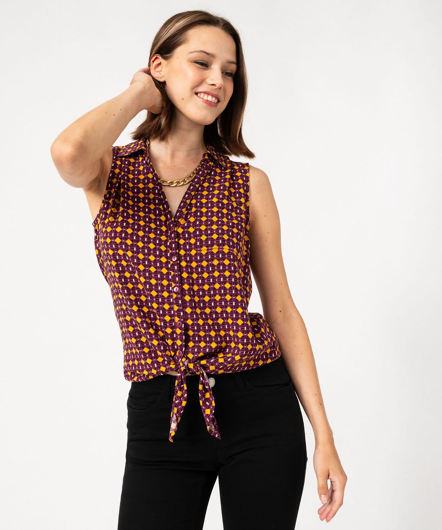 Chemise sans manches imprimée avec nœud dans le bas femme violet