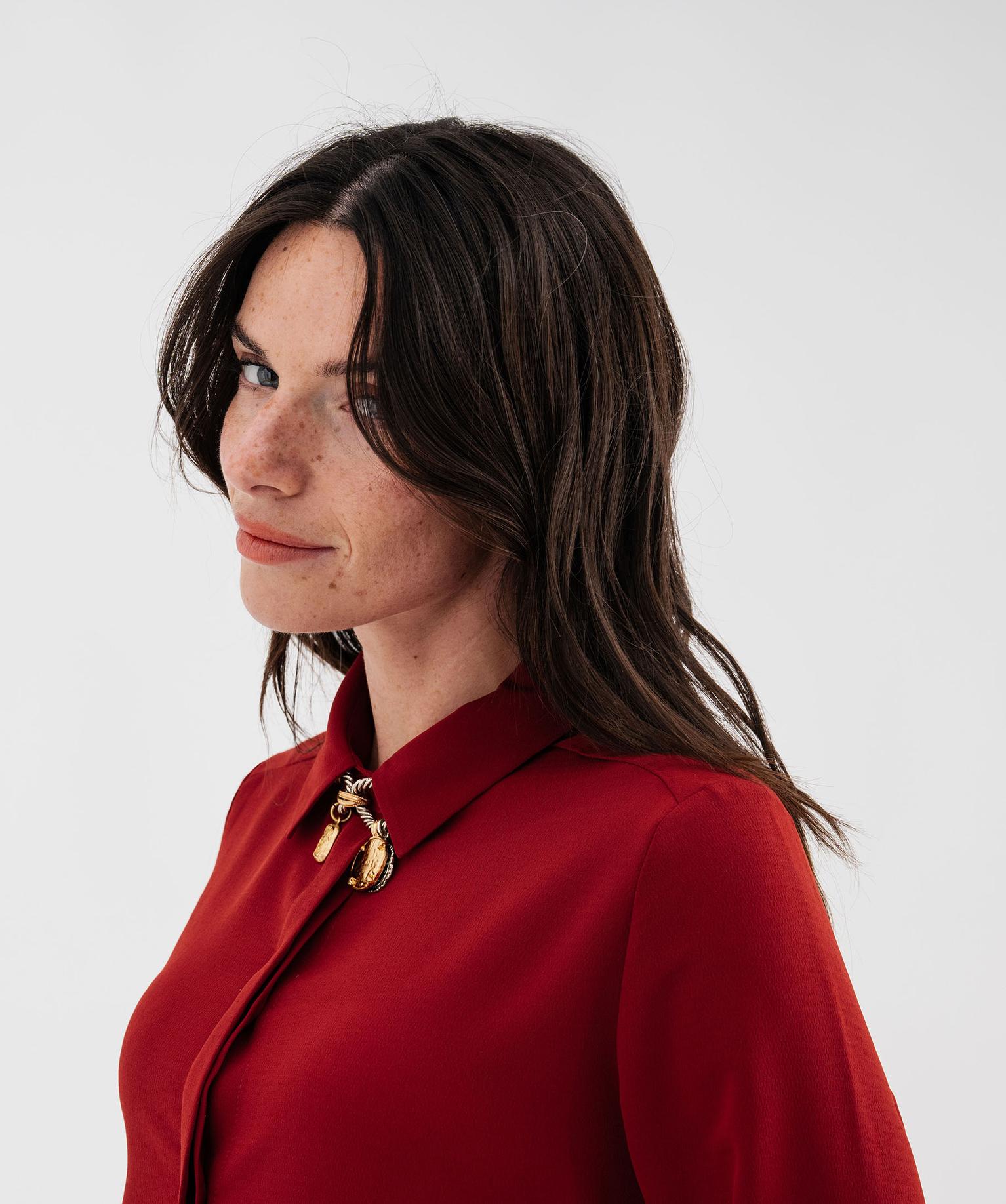 Cette jolie chemise pour femme entrera dans la composition de nombreux looks chics, le jour comme le soir. Une chemise fluide confectionnée dans une matière aspect crêpe en polyester recyclé. Elle possède un petit col classique et se ferme par une rangée de boutons dissimulés sous une patte. Les manches sont resserrées par un biais fermé par deux boutons. Un essentiel chic à porter avec une jupe crayon et des slingback ou avec un ensemble de costume et des derbies vernis. Pli creux dans le dos. Bas arrondi.