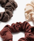 Le chouchou tendance se présente ici dans un satin finement côtelé et dans une déclinaison de couleurs très nature, idéal pour un look casual chic. Un trio de chouchous pour femme à porter ensemble ou séparément pour donner du relief à votre queue de cheval ou à votre chignon.