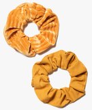 Sublime lot de 2 chouchous femme, idéals pour attacher les cheveux en queue de cheval ou en chignon, et ainsi créer des coiffures fantaisie sans abîmer les longueurs. Le lot comprend un chouchou en tissu finement côtelée et un chouchou en velours à larges côtes. Les deux accessoires sont déclinés dans un même coloris tendance. À porter ensemble ou séparément.