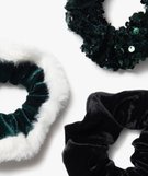 Chouchous en velours et sequins (lot de 3) vert fonce