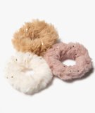 Voici 3 élastiques doux pour les cheveux qui permettront aux filles de créer de jolies coiffures : couettes, chignons ou queues de cheval. Des chouchous pour fille en matière peluche parsemés de petites touche pailletées. Un lot de 3 élastiques de coloris différents qui s’accorderont avec l’ensemble du vestiaire des enfants.