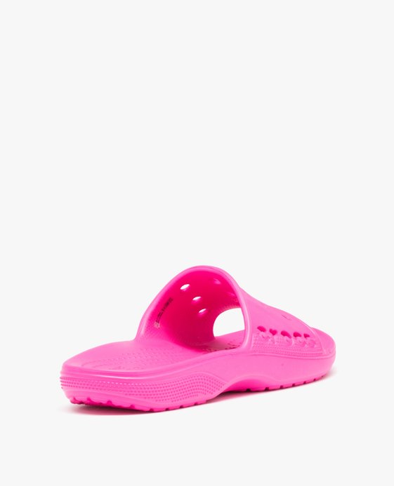 Parmi le grand choix de mules de piscine, cette paire de claquettes pour femme est certainement l'une des plus confortable ! Avec la semelle intérieure Croslite spécifique à la marque Crocs, le pied ressent comme une sensation de massage lors d élastique marche, grâce aux picots incrustés. Ces claquettes Baya II Slide sont idéales pour la plage. Elles supportent l'eau et le sable chaud, tout en offrant une respirabilité optimale grâce à la perforation de la bride. Vous ne quitterez plus votre paire de sandales aquatiques !