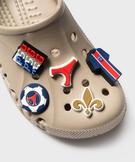 Les supporters du PSG seront fiers de personnaliser leurs sabots Crocs et leurs tongs avec des Jibbitz™ Paris Saint Germain. Des clips spécialement conçus pour être insérés dans les perforations des chaussures Crocs. Un lot de 5 clips à positionner comme bon vous semble !