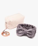 Coffret de 3 accessoires à maquillage : bandeau, miroir et trousse beige