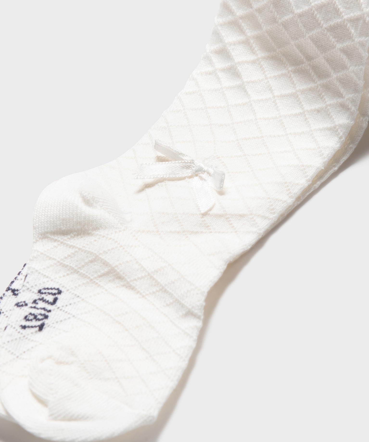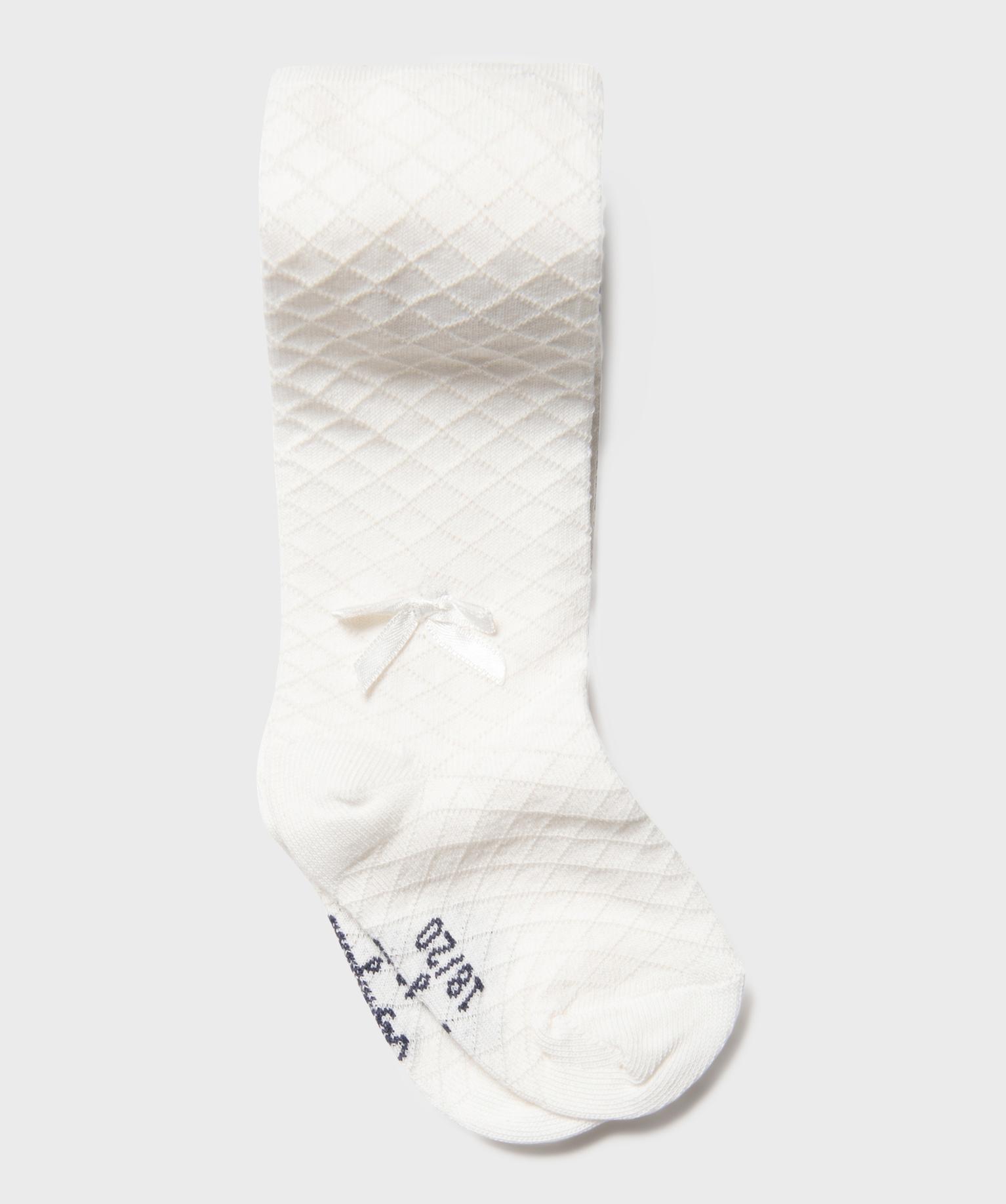 Collant chaud en maille fantaisie avec noeud bébé fille - LuluCastagnette ecru