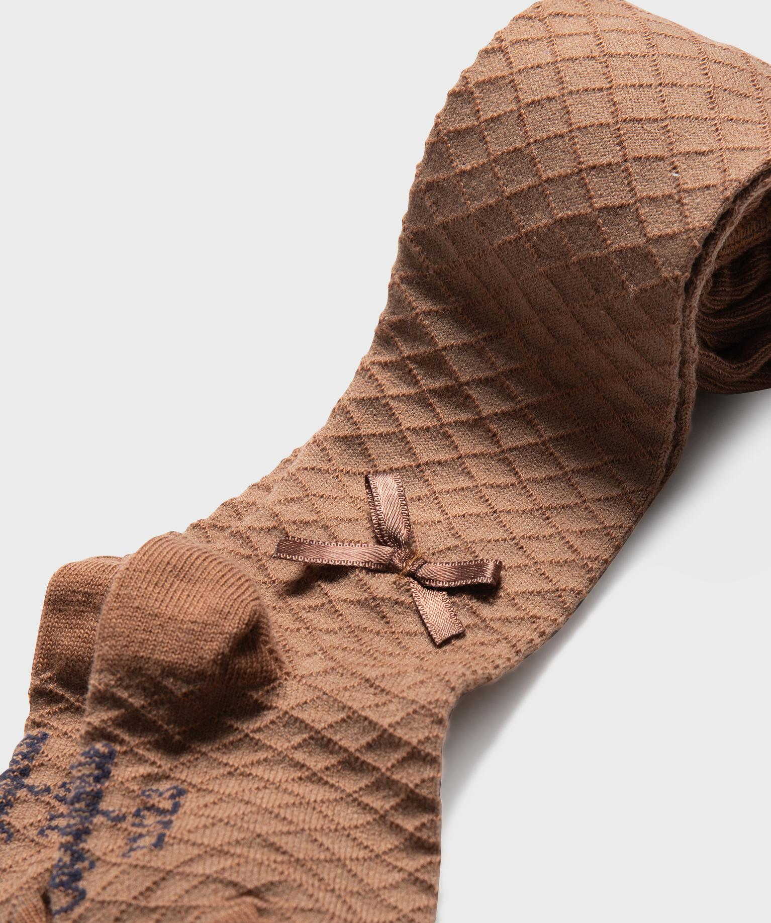 Collant chaud en maille fantaisie avec noeud bébé fille - LuluCastagnette marron