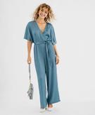 Laissez-vous séduire par cette sublime combinaison pantalon ! Confectionnée en satin plissé et subtilement brillant, la combi longue vous fait une allure glamour et aérienne, aussi féminine que confortable. Cette combi-pantalon femme affiche un sensuel décolleté cache-cœur, une taille marquée par une ceinture à nouer et une jambe large. Elle présente des manches courtes et une ouverture au dos par bouton et fente en goutte. Dos élastiqué sur l'arrière pour un ajustement impeccable.