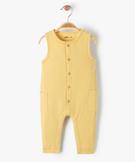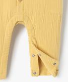 Barboteuse pour bébé dans une version moderne et longue. Confortable et pratique, la combinaison bébé est fabriquée en gaze de coton doublée de jersey, avec boutonnière intégrale devant et entrejambe pressionné. Coquet, il possède des revers cousus en bas de jambe et se décline en uni ou à motifs. À porter seul ou sur un body à manches longues.