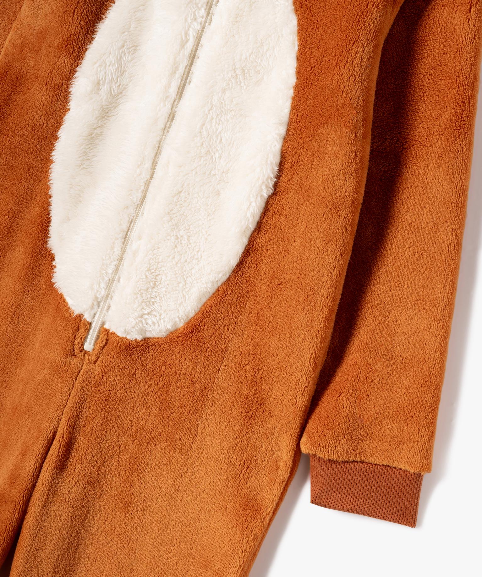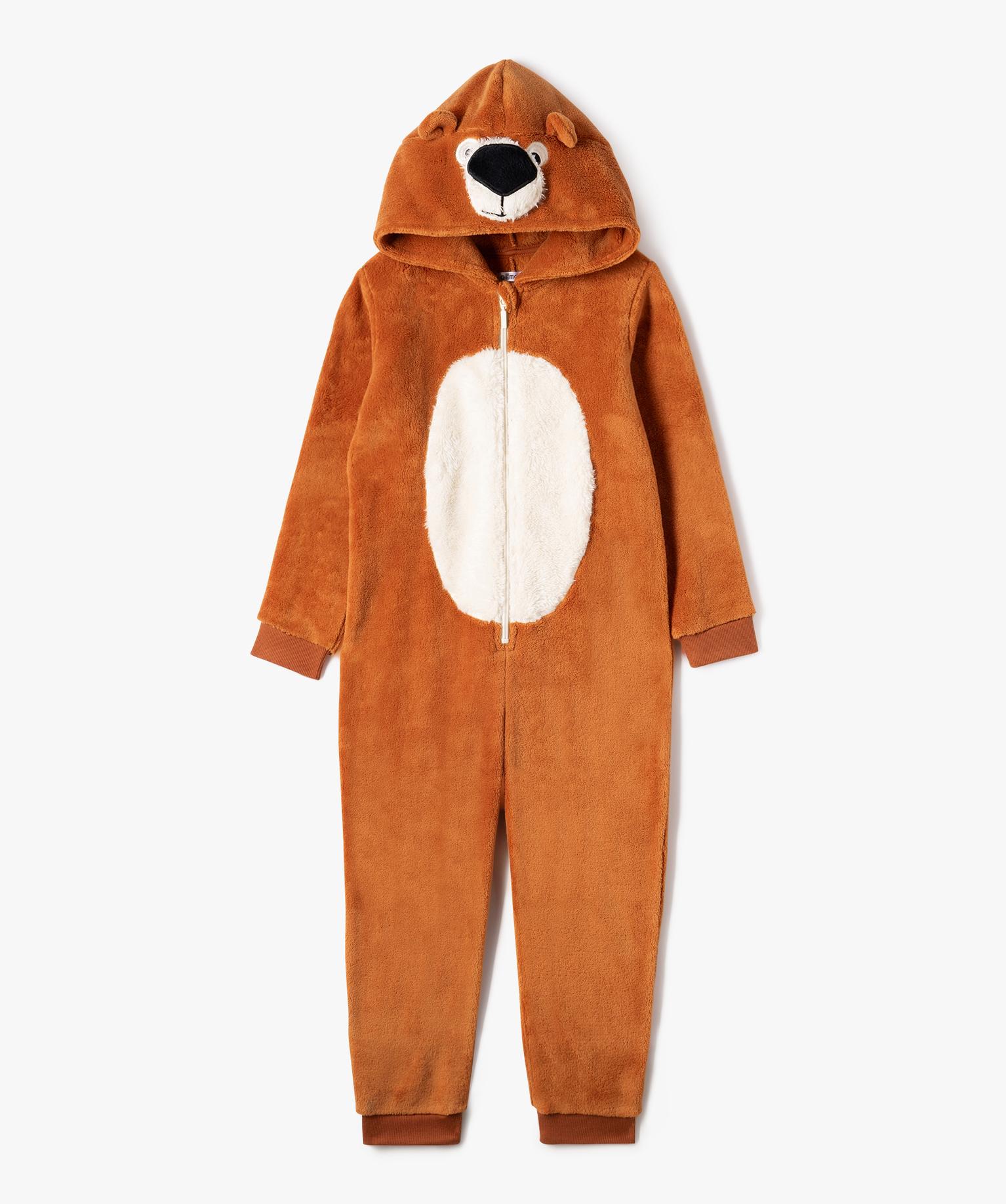 Combinaison d’intérieur en maille pelucheavec motif ours enfant marron