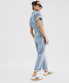 Combinaison pantalon en jean à manches courtes femme bleu