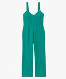 Combinaison pantalon femme à bretelles contenant du lin[MISSING] vert emeraude