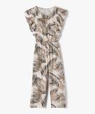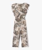 Une combinaison pantalon pleine de charme avec ses motifs exotiques totalement dans l’esprit estival ! Une combinaison fille confectionnée dans une viscose fluide agrémentée de larges volants de chaque côté du buste, qui flottent sur les épaules. Elle se ferme par une rangée de boutons aspect bois et possède une ceinture élastique très confortable. Cette combinaison sans manches se porte aussi bien avec des baskets qu’avec des ballerines. Col rond.
