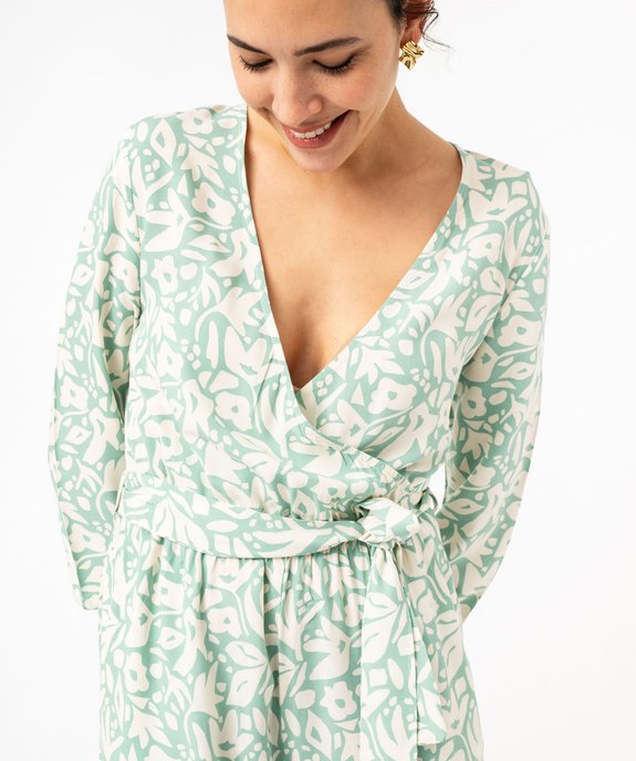 Combinaison-pantalon fluide et imprimée femme vert clair