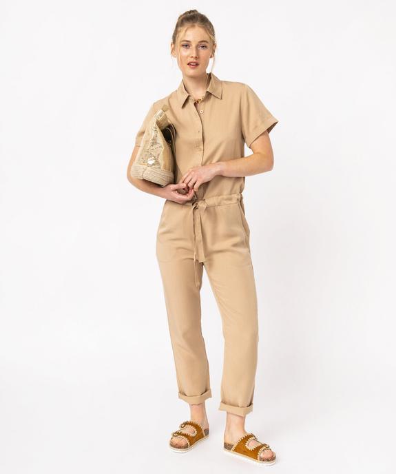 Combinaison pantalon haut chemise en Lyocell femme beige