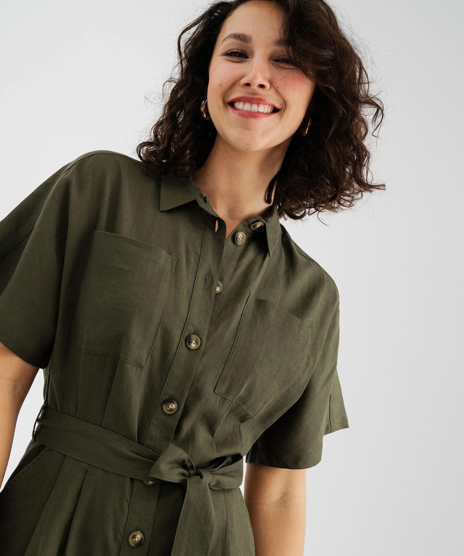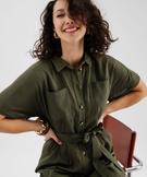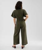 Combinaison pantalon inspiration saharienne en lin et viscose femme kaki fonce