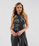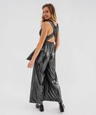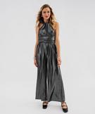 Combinaison pantalon multilook en maille fluide et brillante femme gris