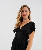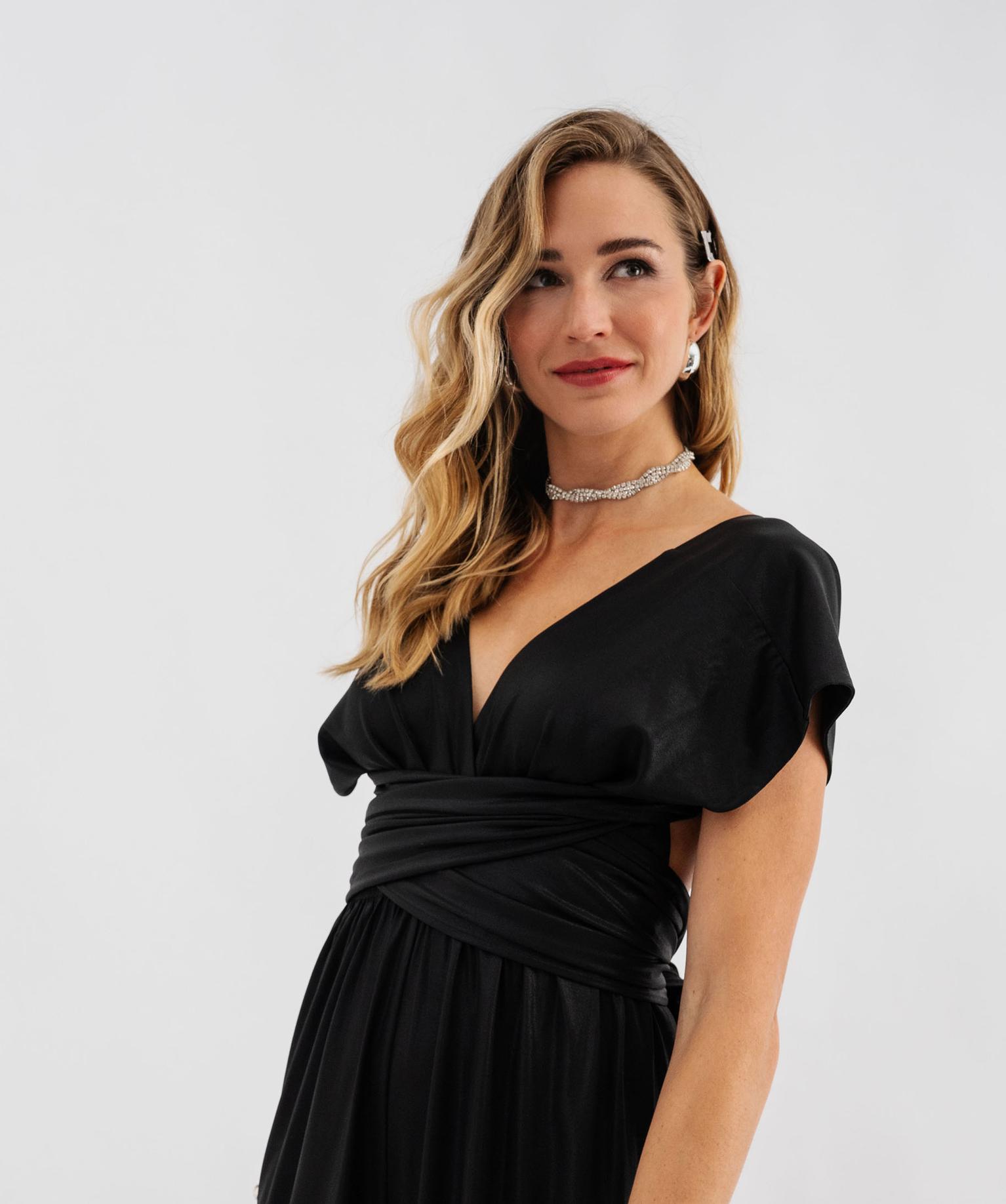 Combinaison pantalon multilook en maille fluide et brillante femme noir
