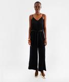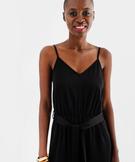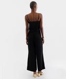Combinaison pantalon satinée à fines bretelles femme noir