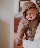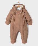 Combinaison pilote à capuche, moufles et double zip bébé marron