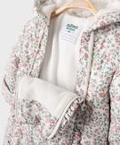 Indispensable pour protéger bébé contre le froid hivernal, la combinaison pilote ne laisse passer aucun courant d’air ! Cette combinaison pilote pour bébé fille s’affiche dans une version ultra girly avec ses petits motifs fleuris. Elle est confectionnée dans une matière matelassée, avec rembourrage en polyester recyclé, et doublure polaire pour un maximum de chaleur. Elle possède une capuche et des moufles intégrés également doublées. Cette combinaison chaude permet une installation facile de bébé grâce à ses deux fermetures zippées bordées de petits volants, qui s’ouvrent du col jusqu’aux pieds.