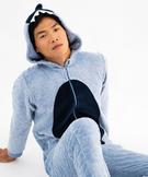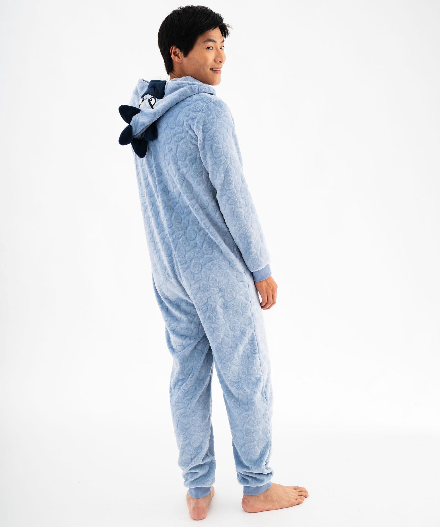Combinaison pyjama à capuche en maille motif dinosaure homme bleu