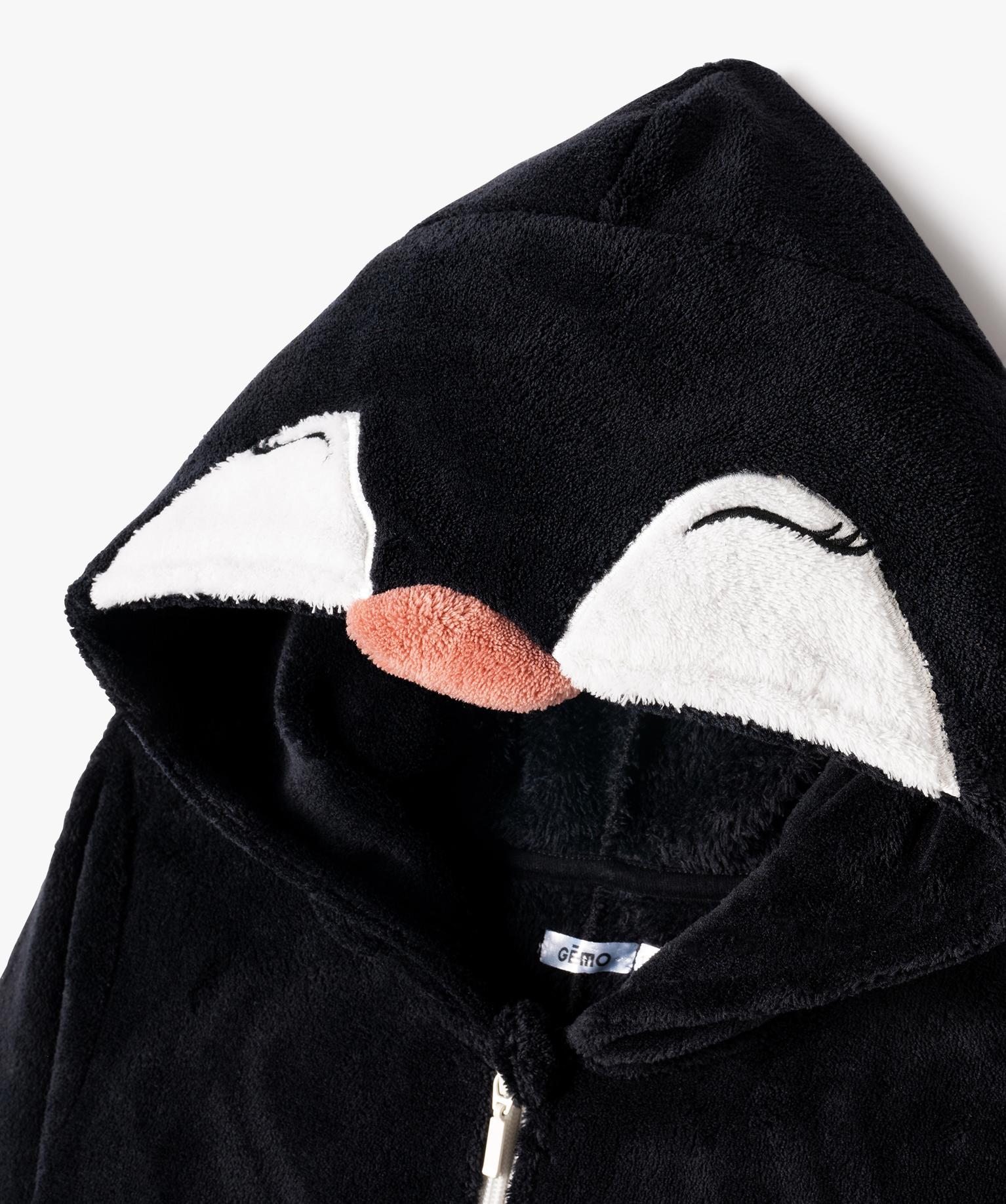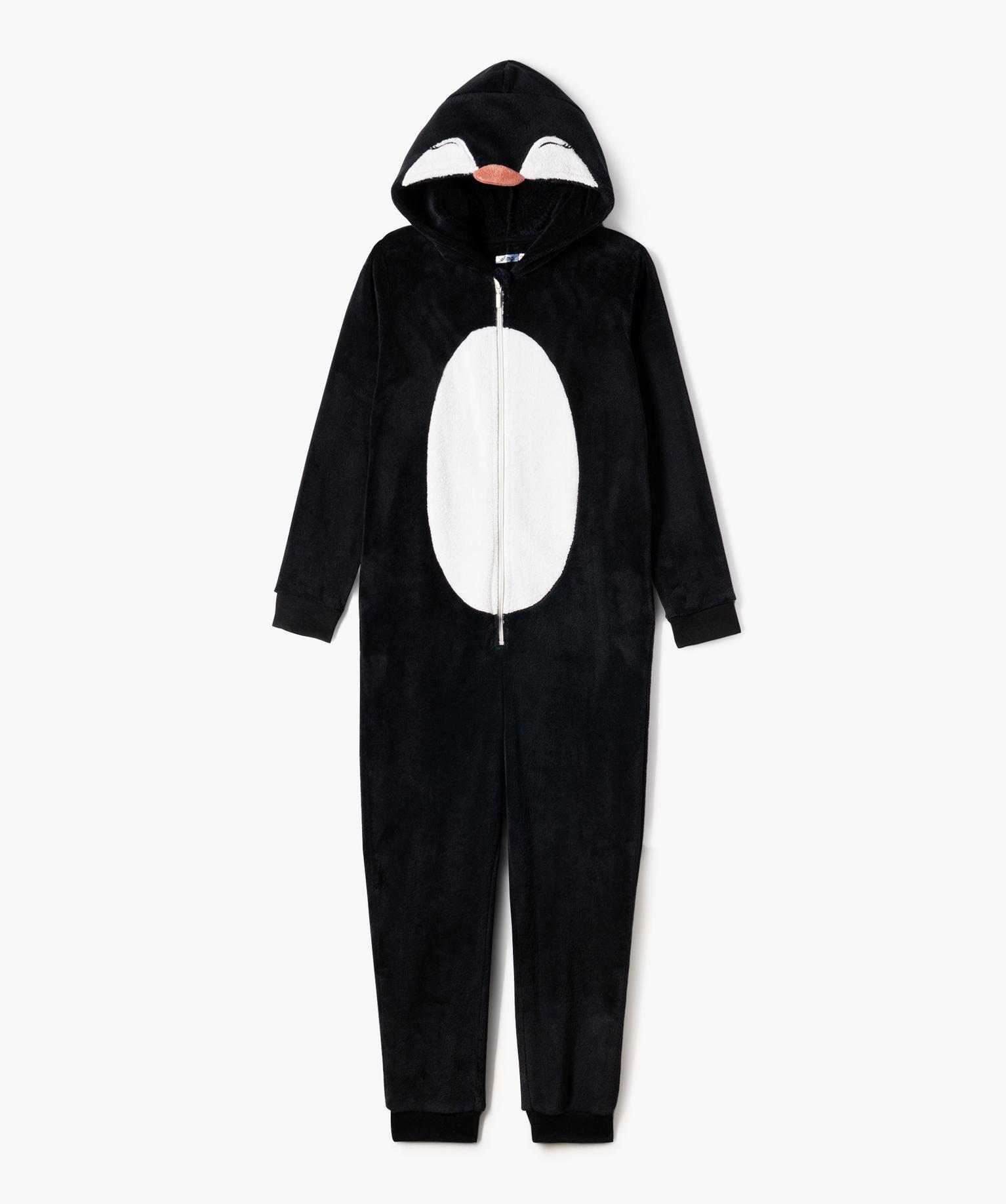Combinaison pyjama en maille peluche motif pingouin fille noir