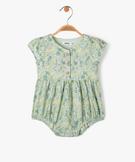Combishort à manches courtes à motifs fleuris bébé fille vert