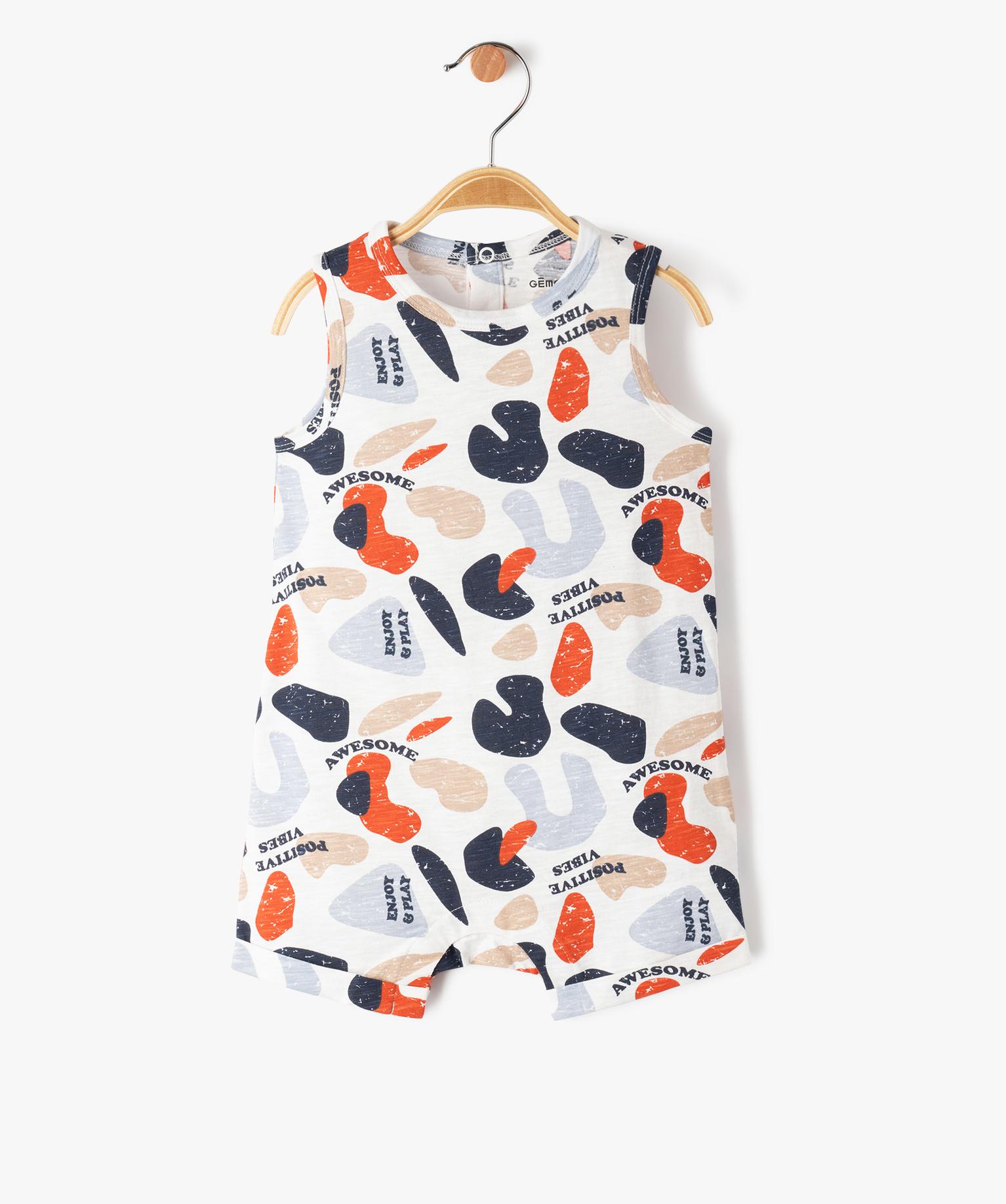 Combishort avec inscription bébé garçon blanc