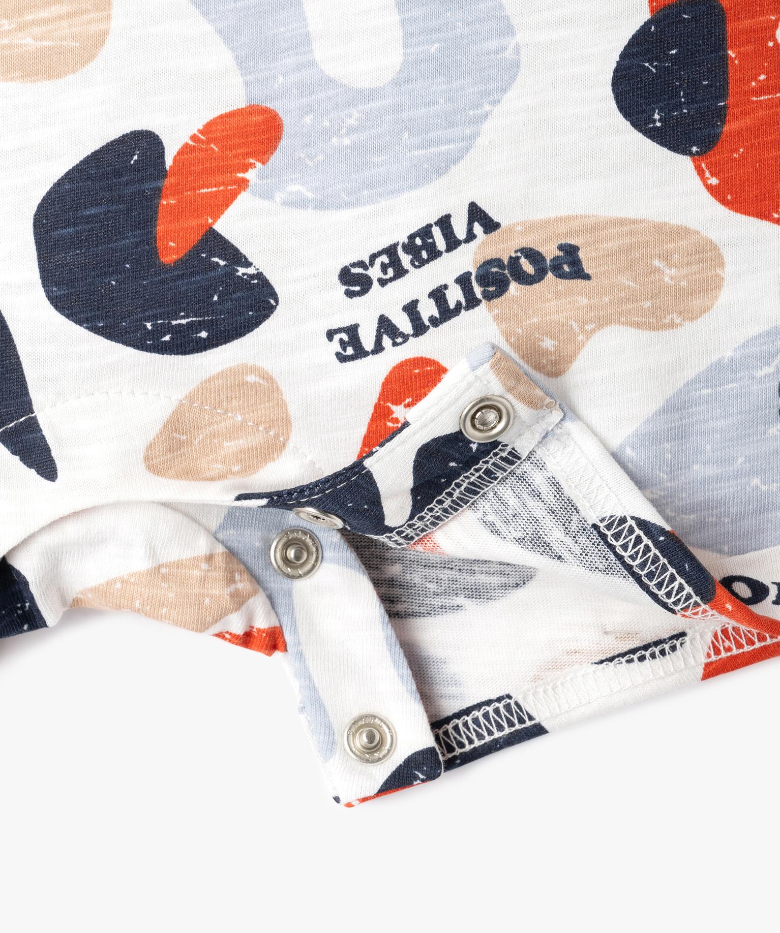 Craquez pour cet adorable combishort en jersey de coton, une pièce indispensable du vestiaire estival des tout-petits. Facile à enfiler, ce combishort bébé garçon offre aux enfants un maximum de confort et une grande liberté de mouvements. Il est décliné dans des couleurs pétillantes et est agrémenté d’une inscription fantaisie sur le buste. Cette combinaison courte possède un col rond, de larges emmanchures, des revers cousus en bas des jambes et des boutons pressions à l’entrejambe pour faciliter le change. Boutons pression dans le haut du dos.