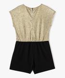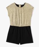 Voici une tenue de fête, élégante, confortable et facile à enfiler qui fera le bonheur de toutes les jeunes fashionistas. Un combishort fille composé d’une partie haute sans manches en maille pailletée et d’un short uni. Confectionné dans des matières extensibles, ce combishort bicolore accompagne les enfants tout restant confortable toute la journée. Il se ferme grâce à un zip invisible dans le dos et possède une taille élastique. Il se porte avec une paire de collants fantaisie et des derbies vernis. Col rond.