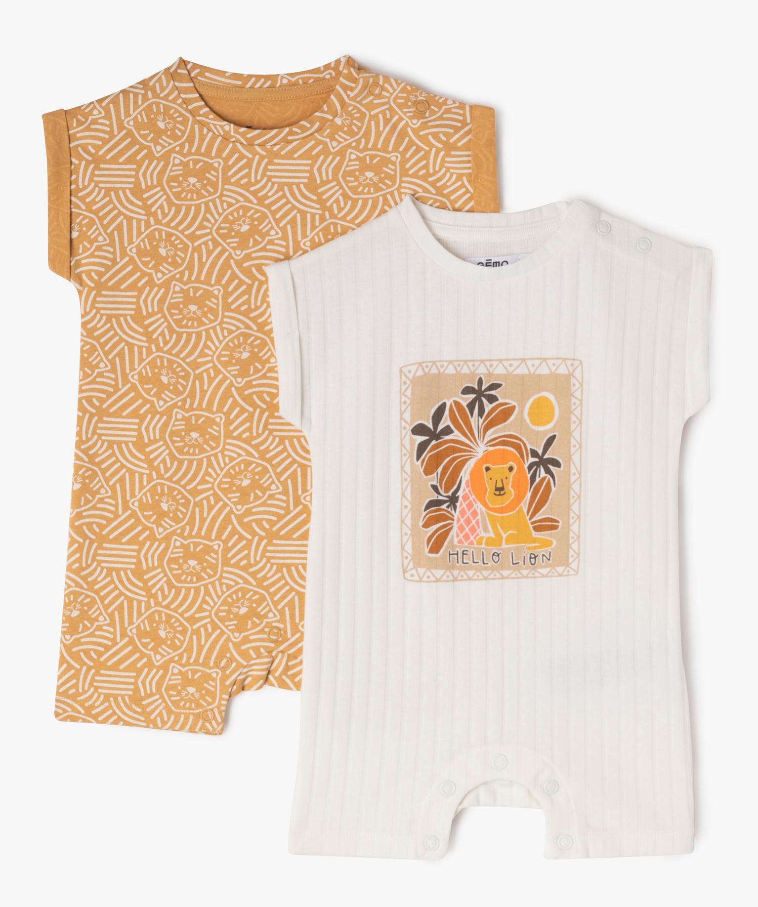 Combishort en coton avec motifs lions bébé garçon (lot de 2) blanc chine