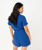 Craquez pour cet élégant combishort en gaze de coton. Avec son col tailleur et ses manches courtes à revers cousu, il assure une allure à la fois chic et décontractée. Ce combishort femme s’ajuste à l’aide d’un joli cordon coulissant agrémenté de pompons et de perles de rocaille. Facile à vivre et confortable, il s’ouvre sur l’avant grâce à des boutons pression invisibles, un crochet et un zip. Ce combishort possède deux poches italiennes. Il se porte avec une paire de sandales plates ou à semelle en corde pour composer un style boho au top de la mode !