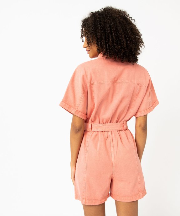 Combishort en toile denim à manches courtes femme orange