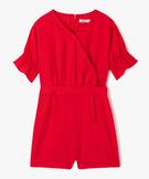 Combishort en toile fluide avec épaules dénudées fille rouge