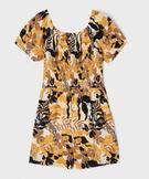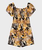 Combishort en viscose avec buste smocké fille imprime feuillage
