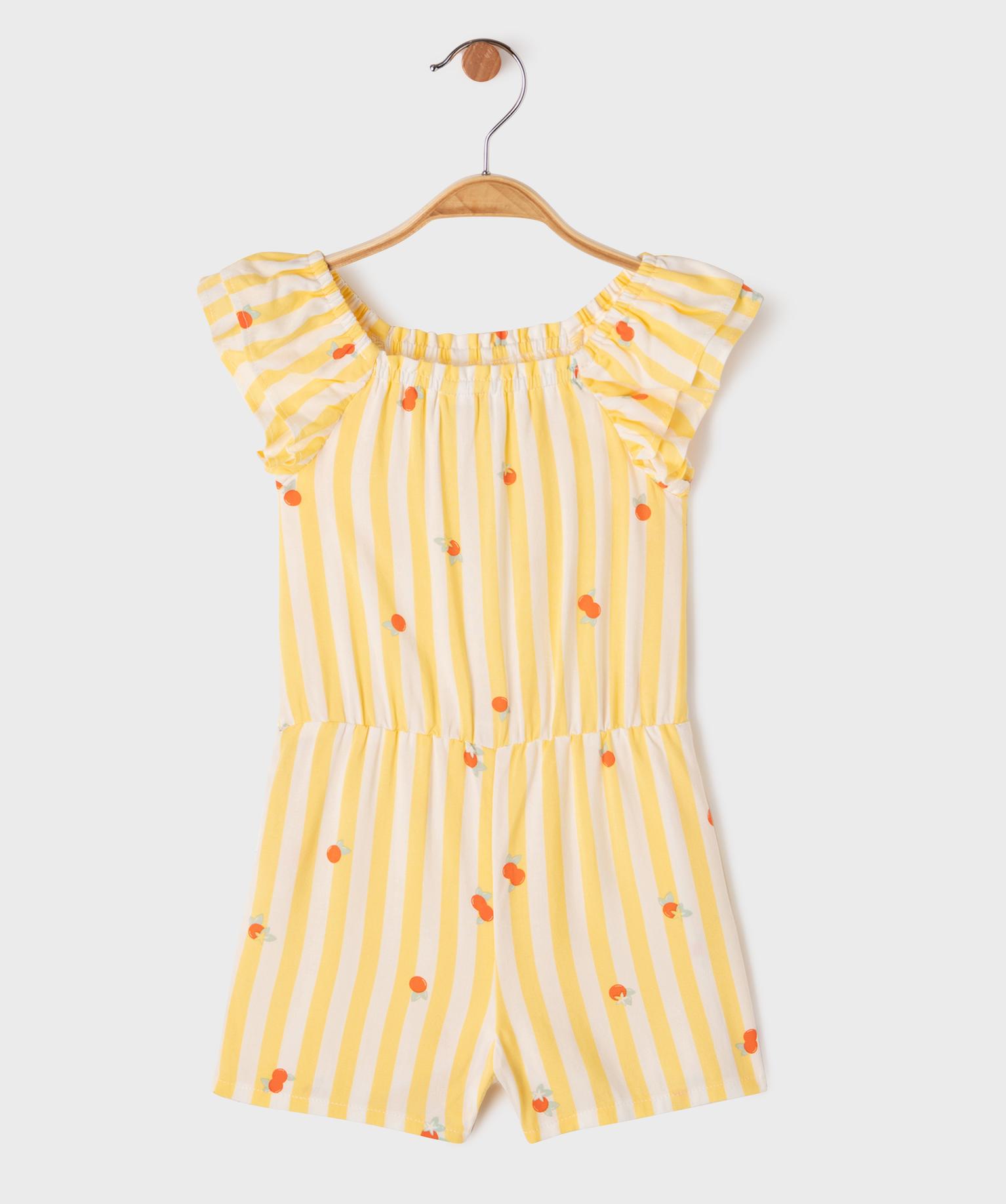 Combishort en viscose rayée et imprimé bébé fille jaune