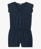 Combishort femme en gaze de coton avec emmanchures volants bleu fonce