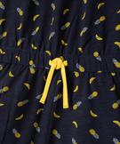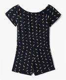 Confort assuré pour les petites filles avec ce combishort en maille extensible doté d’un large col et d’une ceinture élastiques. Un combishort fille parsemé de petits motifs délicats représentant des fruits. Il est agrémenté de revers cousus en bas de jambes et d’un petit noeud fantaisie à la taille. Une combinaison courte à porter en ville comme à la plage. Emmanchures raglan.