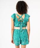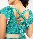 Combishort manches courtes avec brides croisées dans le dos femme bleu turquoise